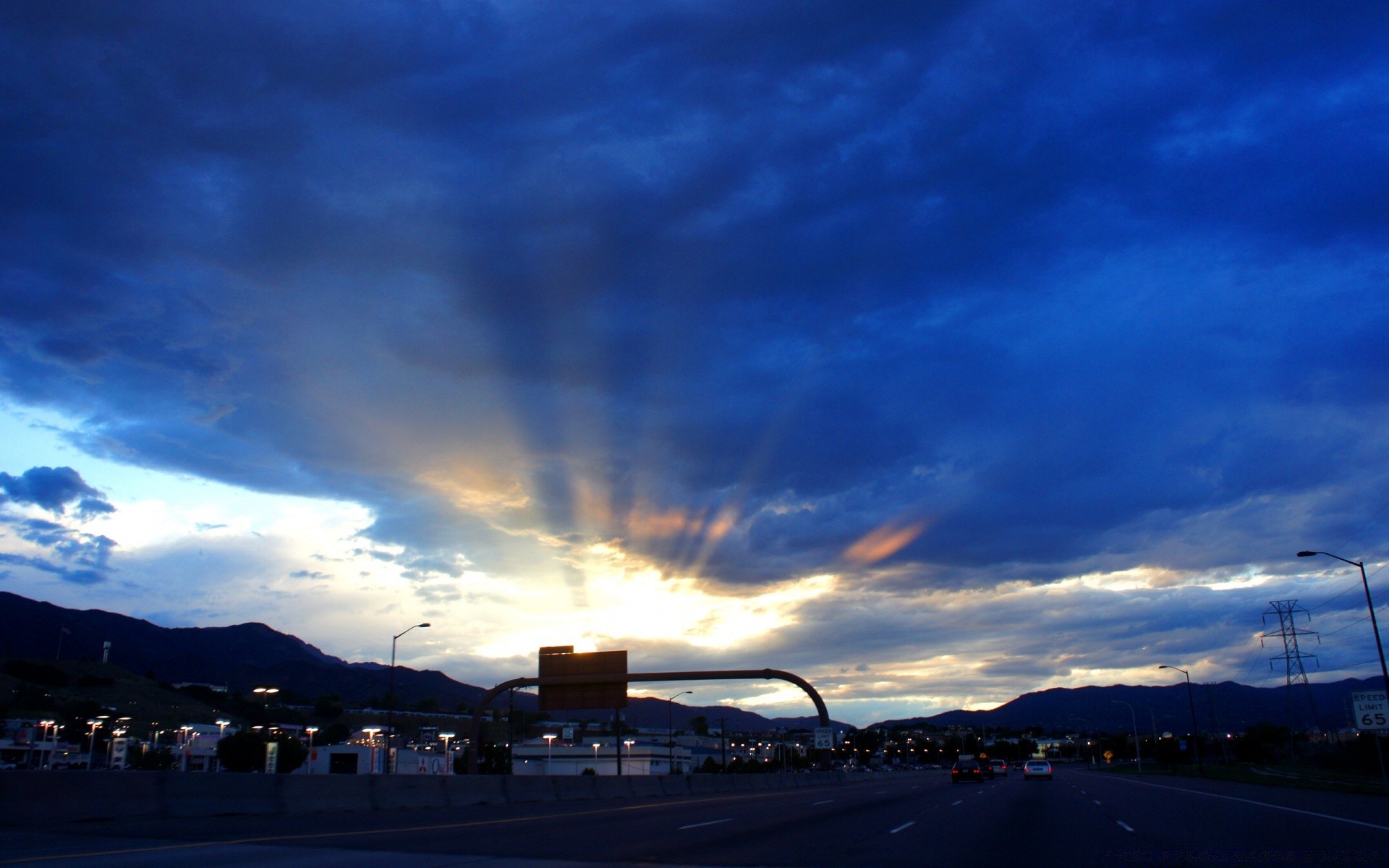 Coucher de soleil sur une petite ville. Ville de province du soir