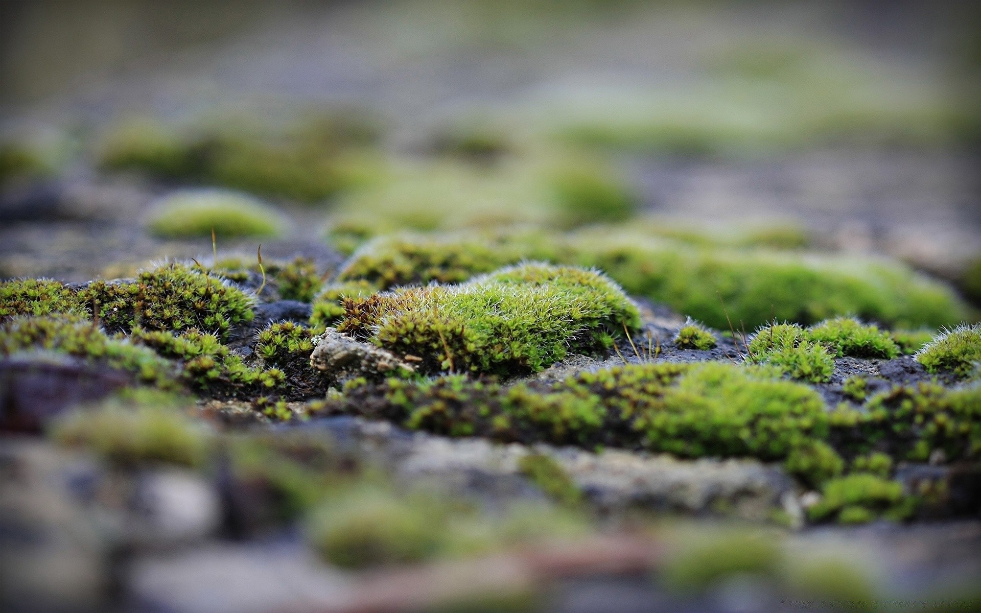 Photographie macro de mousse avec des brindilles sur la pierre