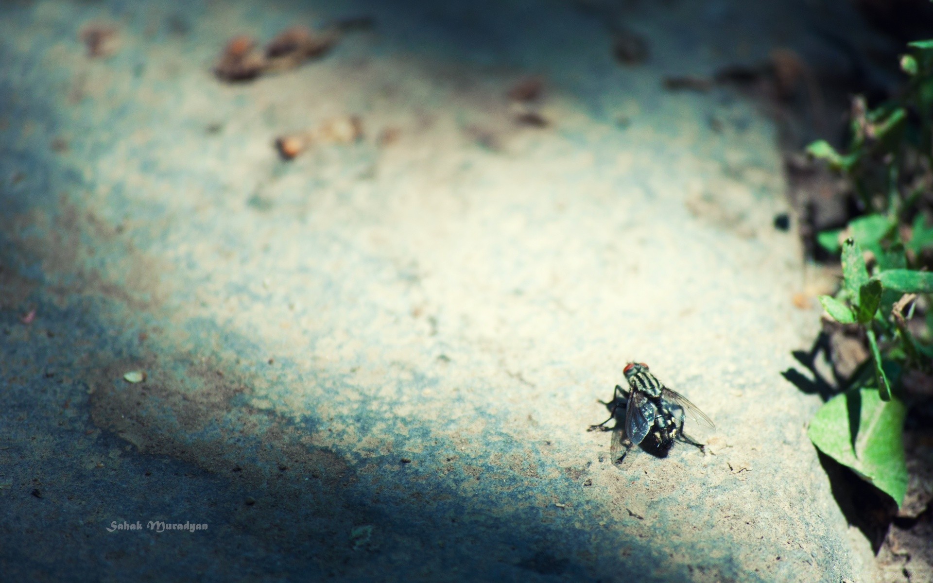 La mouche s'accroupit pour se réchauffer sur la pierre