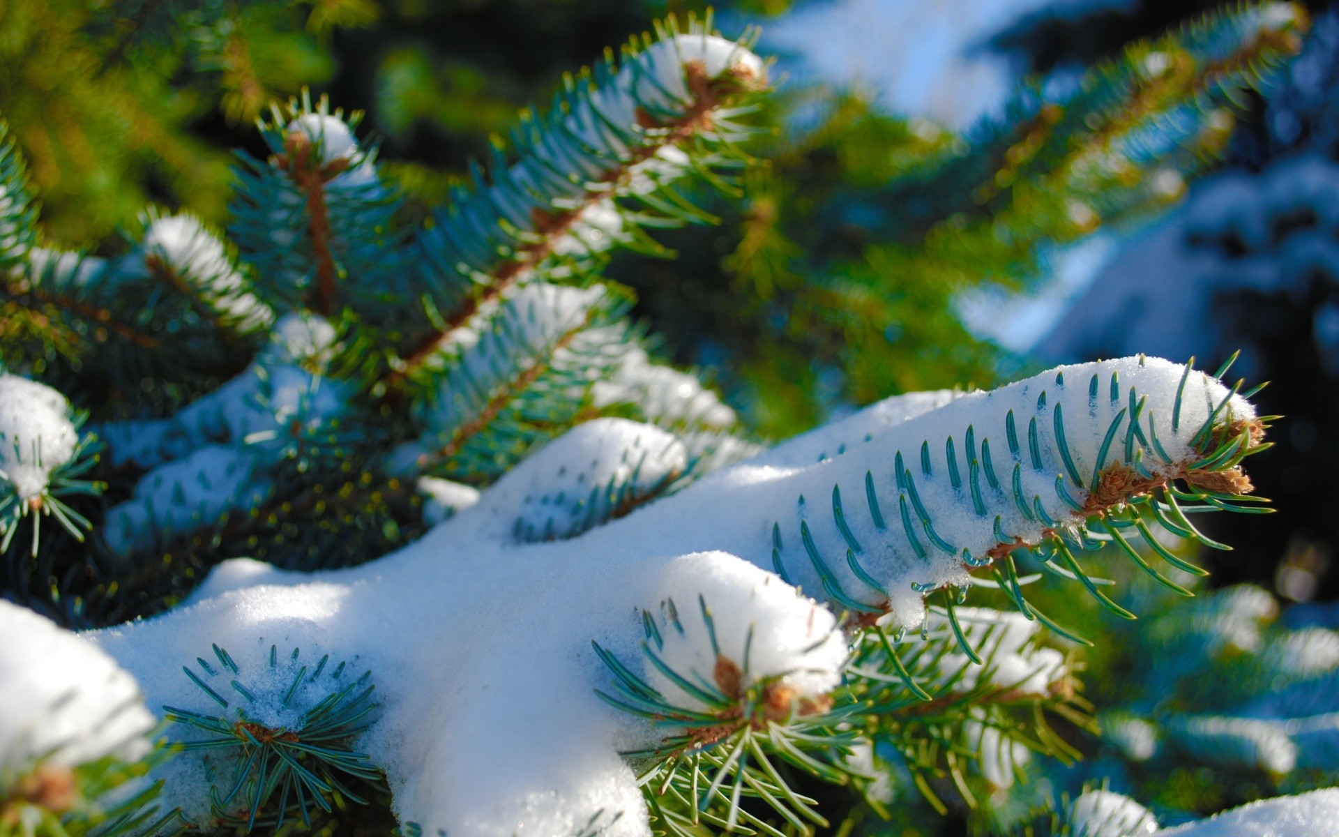 Bas blanc avec un arc sur un fond d'aiguilles vertes