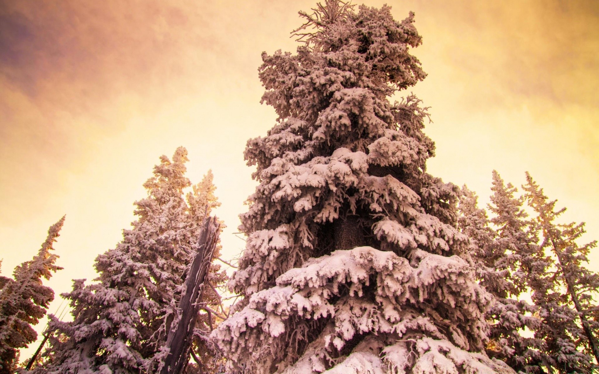 Route dans la forêt froide d'hiver parmi les arbres de Noël