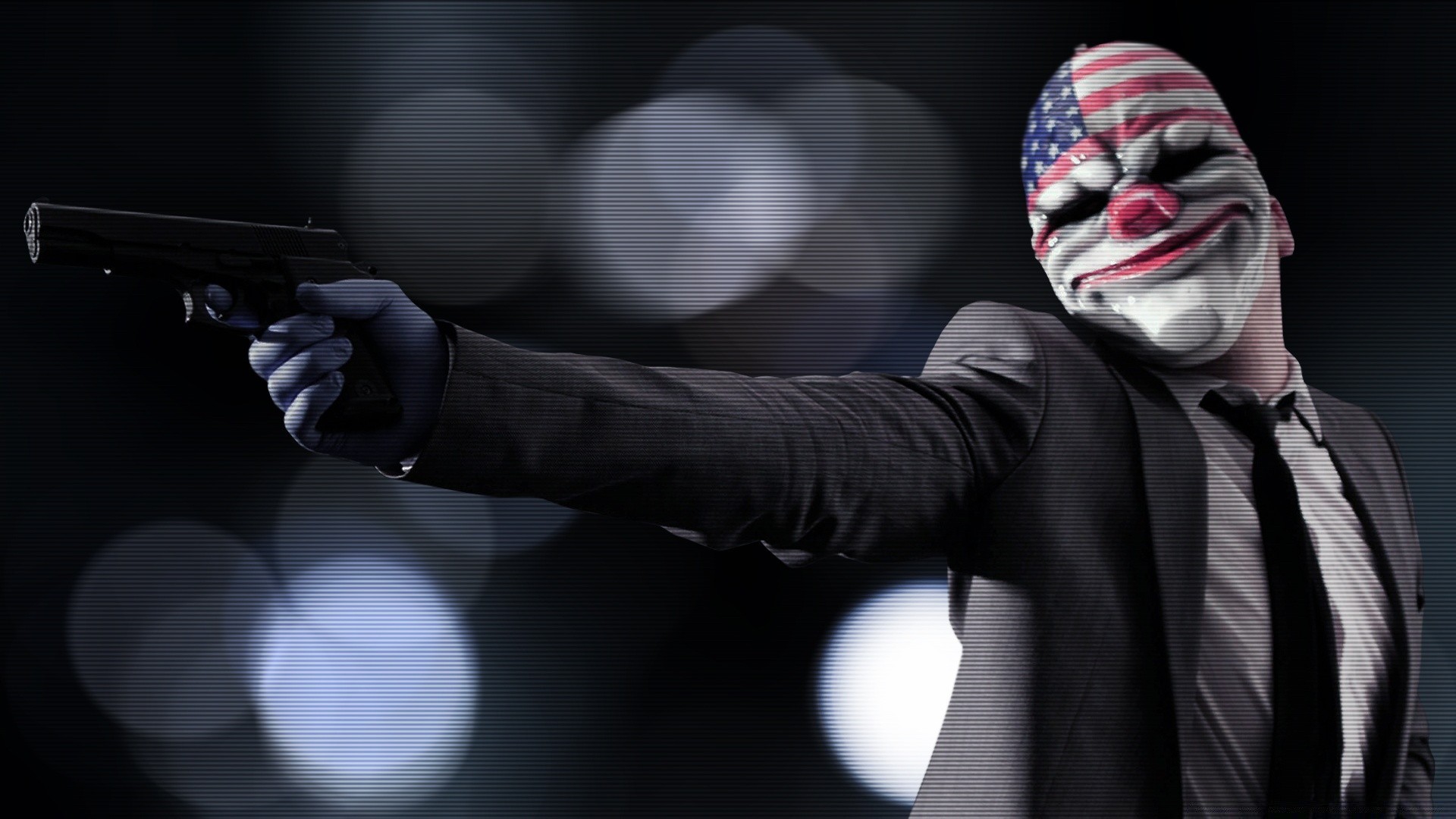 Homme avec un pistolet et un masque avec des symboles américains sur le visage