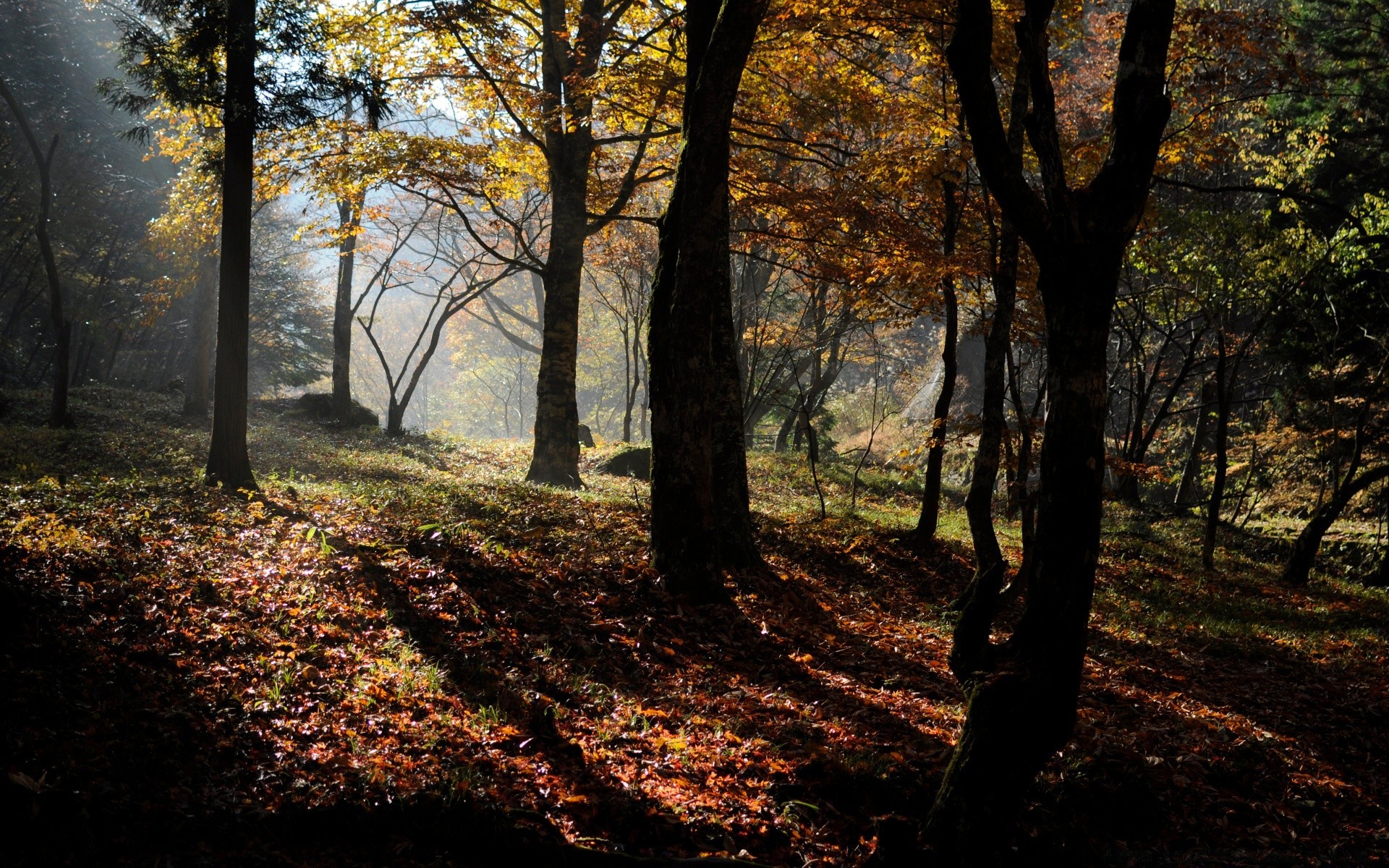 Forêt jusqu'au ciel. Beau paysage dans une brume légère de brouillard