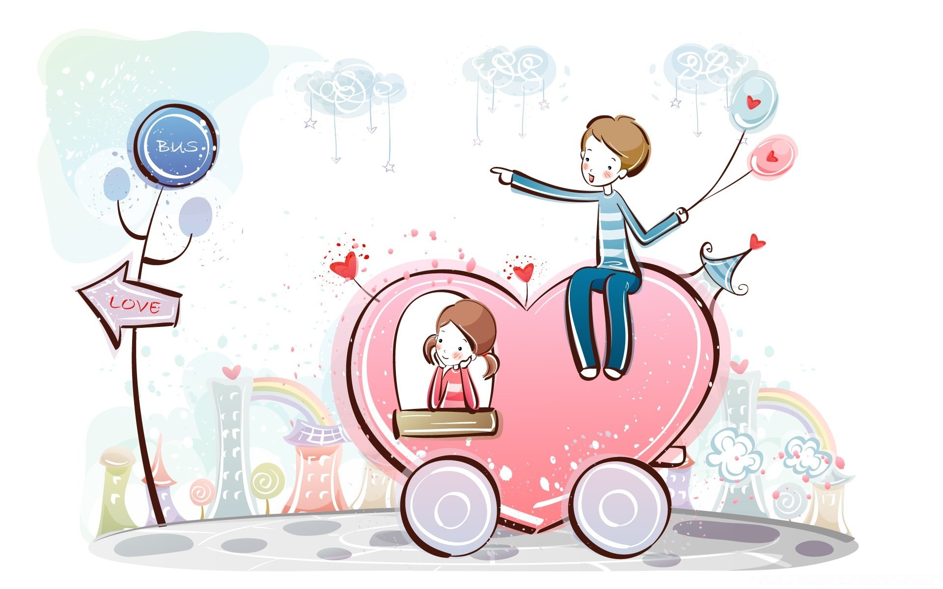 Le gars a de la chance sur le chariot de sa petite amie dans le pays de l'amourLe gars a de la chance sur le chariot de sa petite amie dans le pays de l'amour