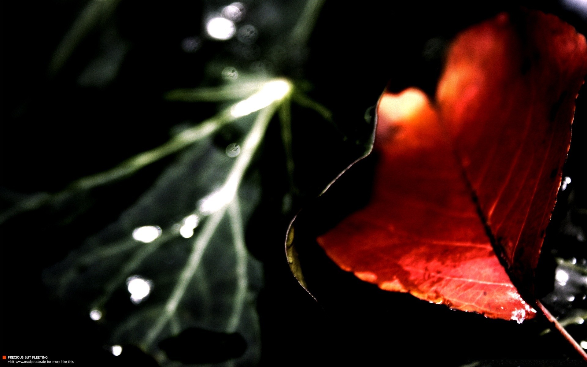 Gouttes de pluie qui coule de la plante sur fond bleu closeupGouttes de pluie qui coule de la plante sur fond bleu closeup