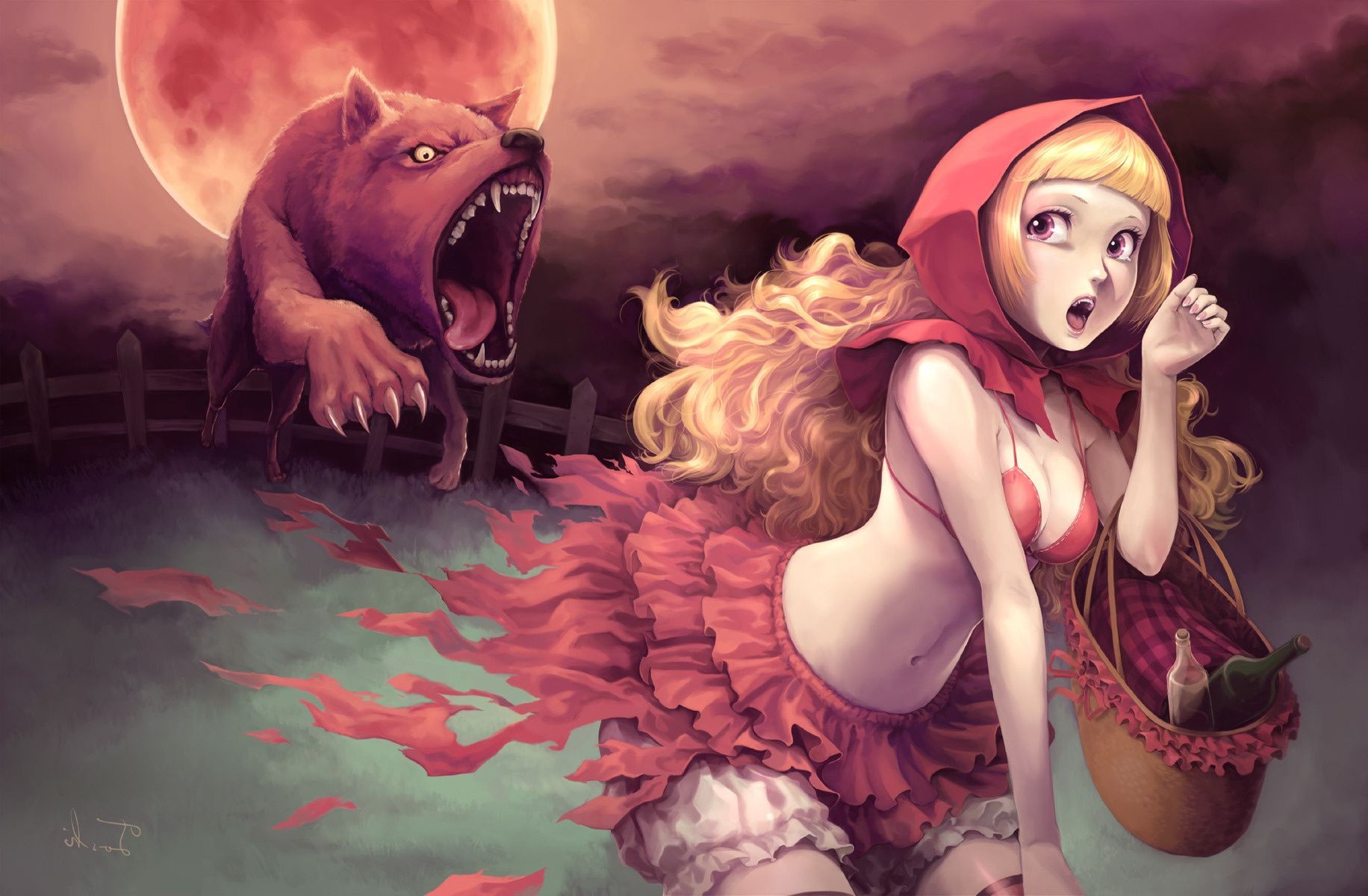 Image d'un bonnet magnifique en bikini fuyant un loup