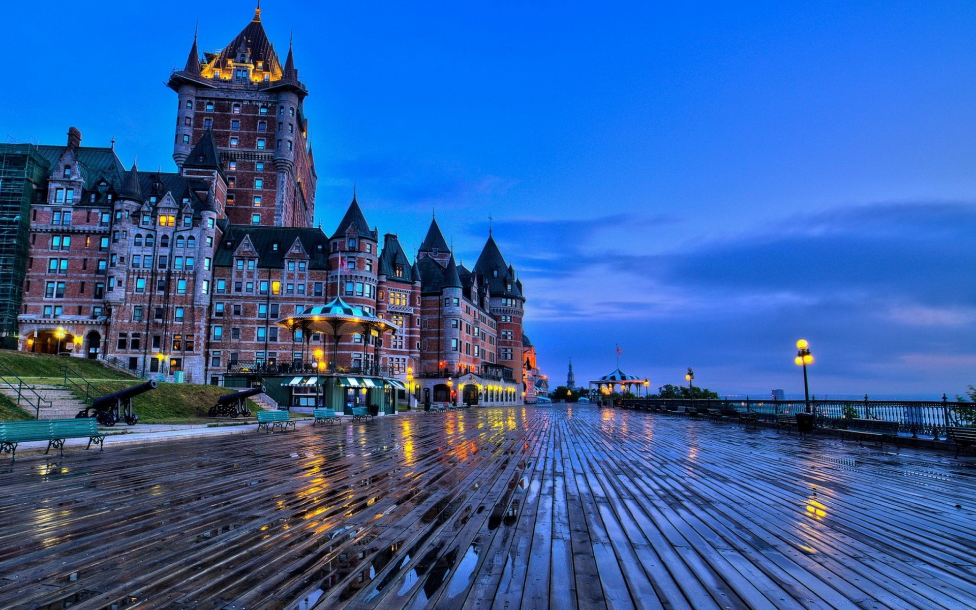 Promenade avec des lanternes après la pluie à l'aubePromenade avec des lanternes après la pluie à l'aube