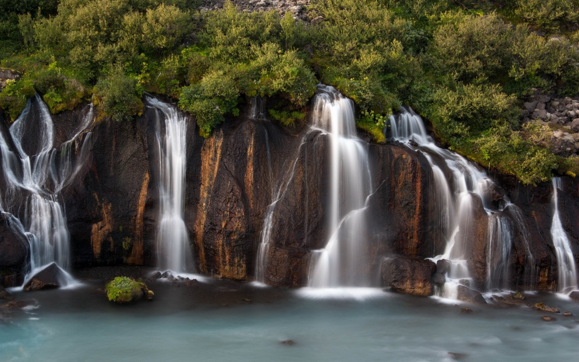 Plusieurs palmiers le long du rivage au coucher du soleil