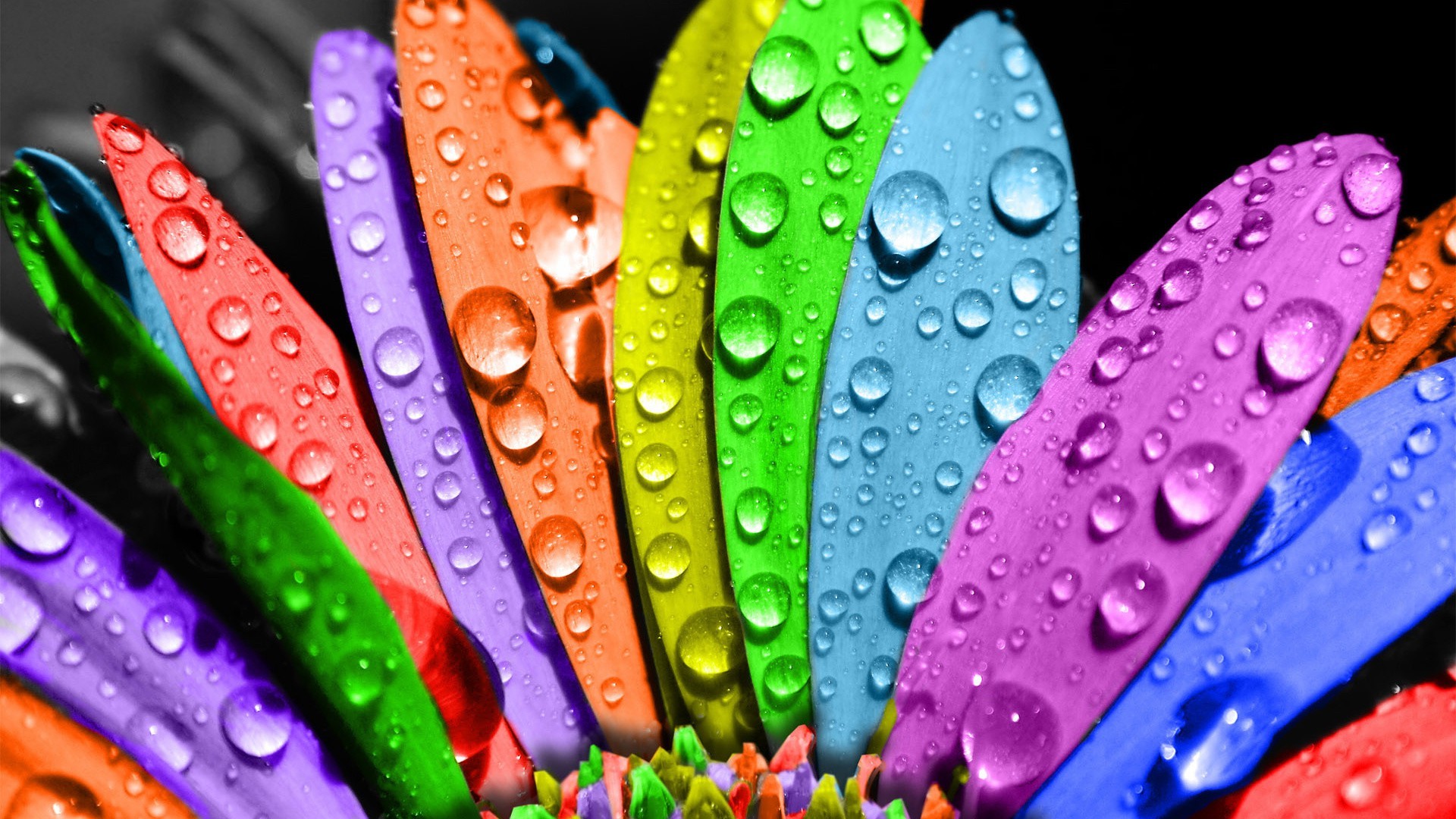 Prise de vue macro d'une goutte d'eau sur les fleurs