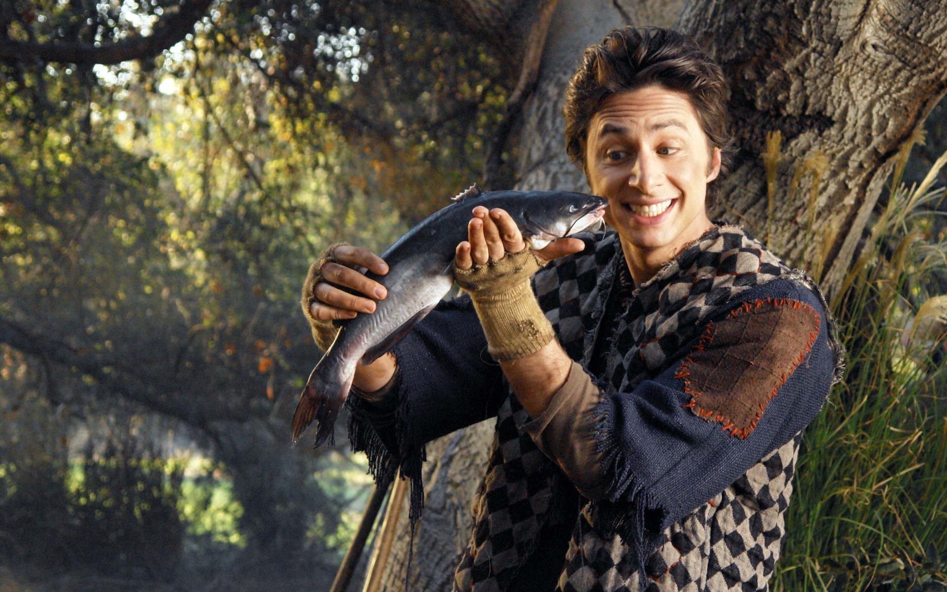 Mec chanceux dans la rue avec un poisson de rêve