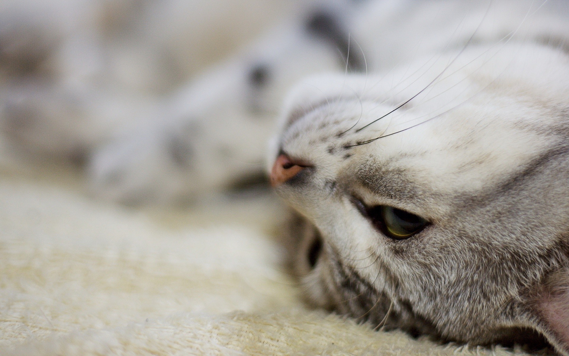 Boule de miaulement moelleux sur un tapis moelleux