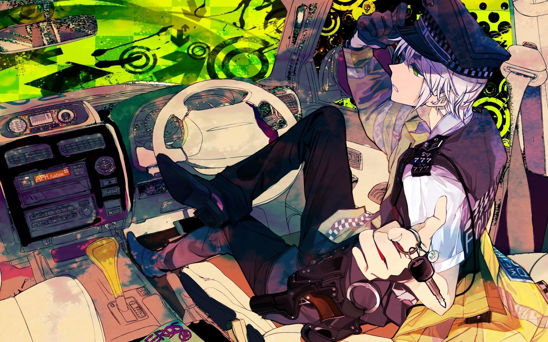 Graphiti magnifiquement dessiné avec l'image d'un homme dans une voitureGraphiti magnifiquement dessiné avec l'image d'un homme dans une voiture