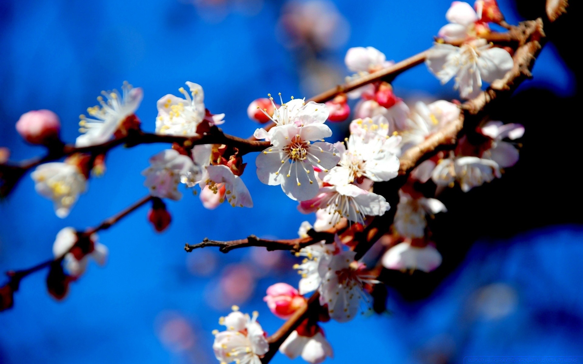 Fleurs de cerisier de printemps sur fond de ciel bleu