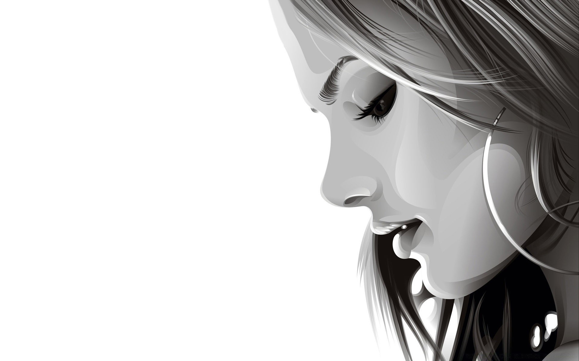 Profil de la jeune fille aux cheveux longs sur fond blanc