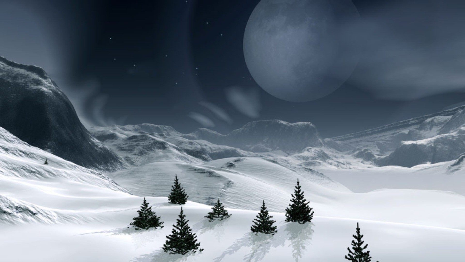 Hiver ensoleillé. Givre blanc sur les arbres. Rivière gelée