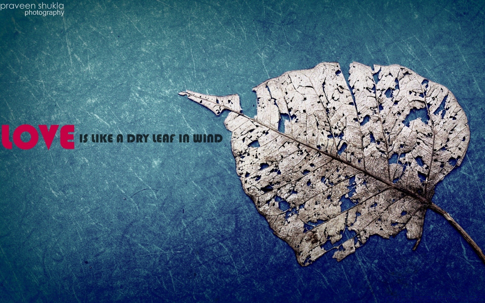 Feuille séchée sur fond bleu