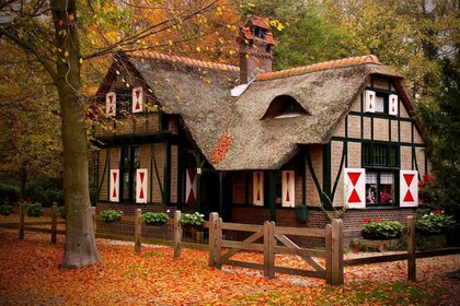 Maison dans les montagnes enneigées de la forêt d'hiverMaison dans les montagnes enneigées de la forêt d'hiver