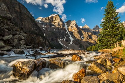 Montagnes couvertes de neige par endroits et les rivières qui courent sur euxMontagnes couvertes de neige par endroits et les rivières qui courent sur eux