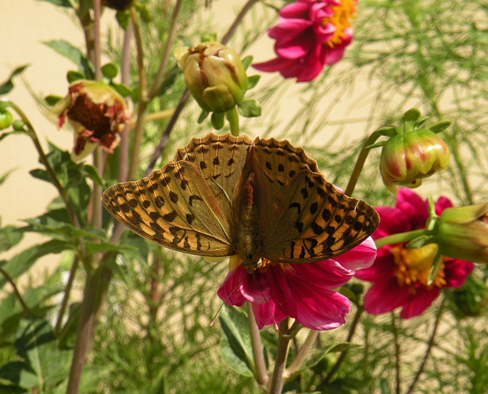 Papillon sur une fleur sur fond vert