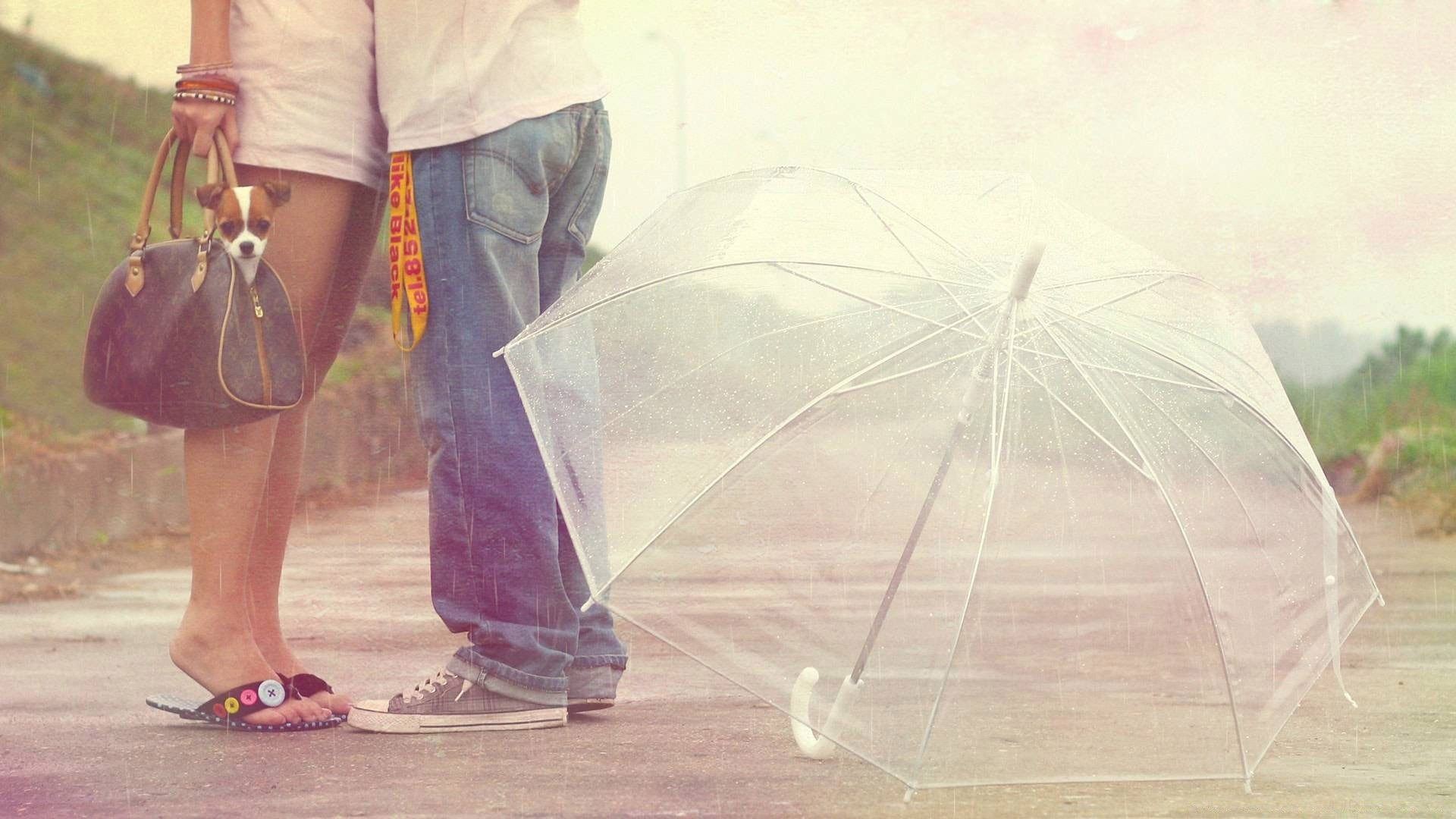 Les amoureux s'embrassent sur la piste se trouve un parapluie