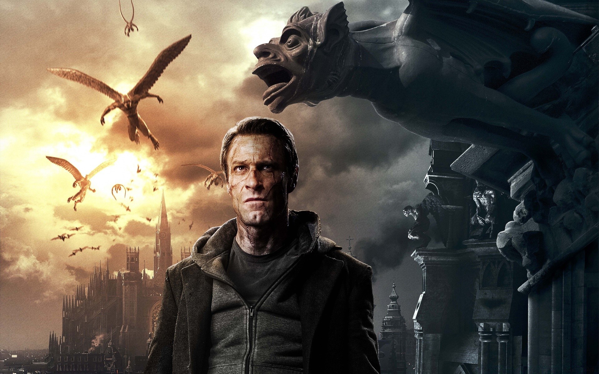 Un homme dans une ville effrayante avec des dragons