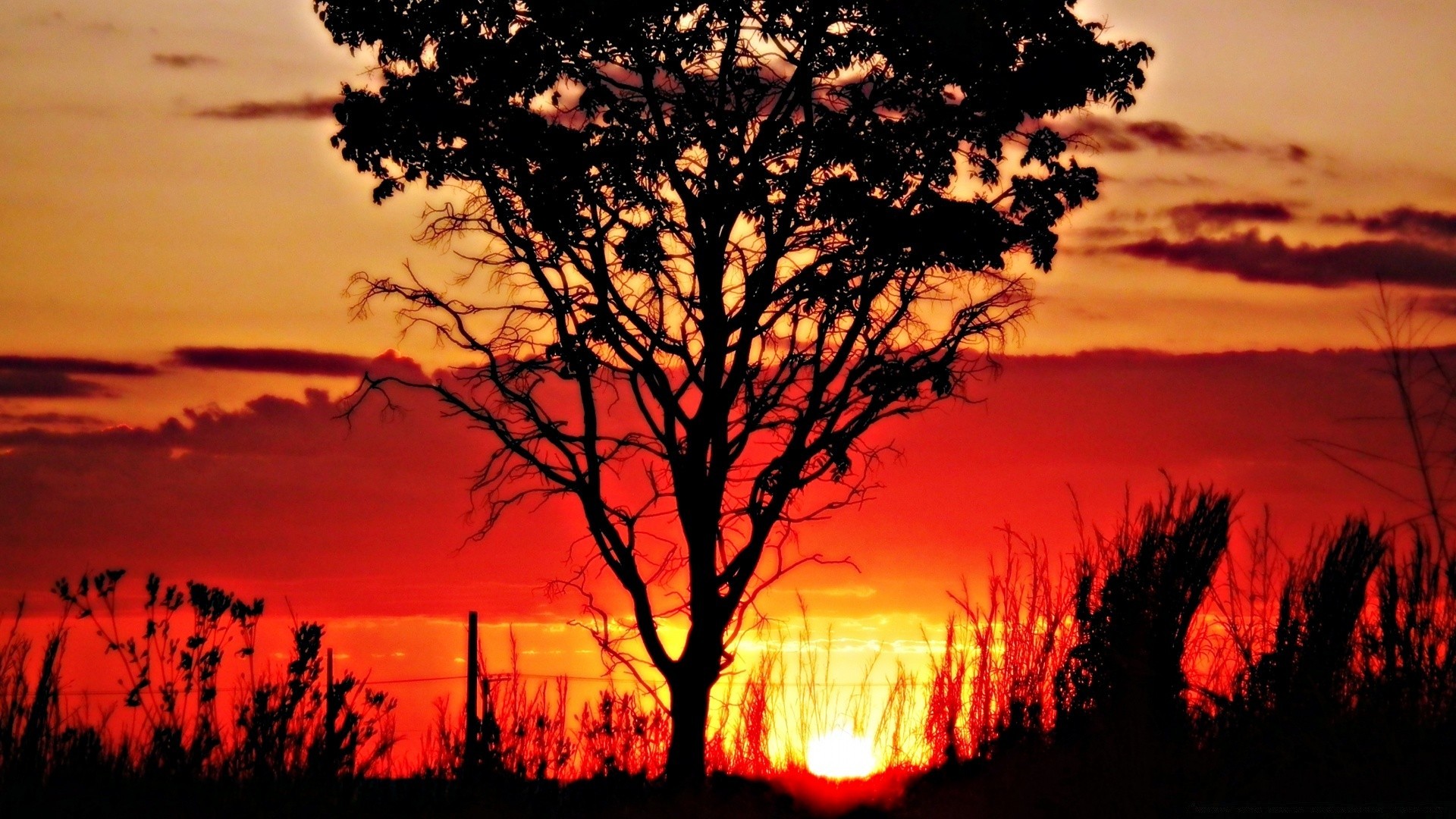 Beau coucher de soleil écarlate dans la nature