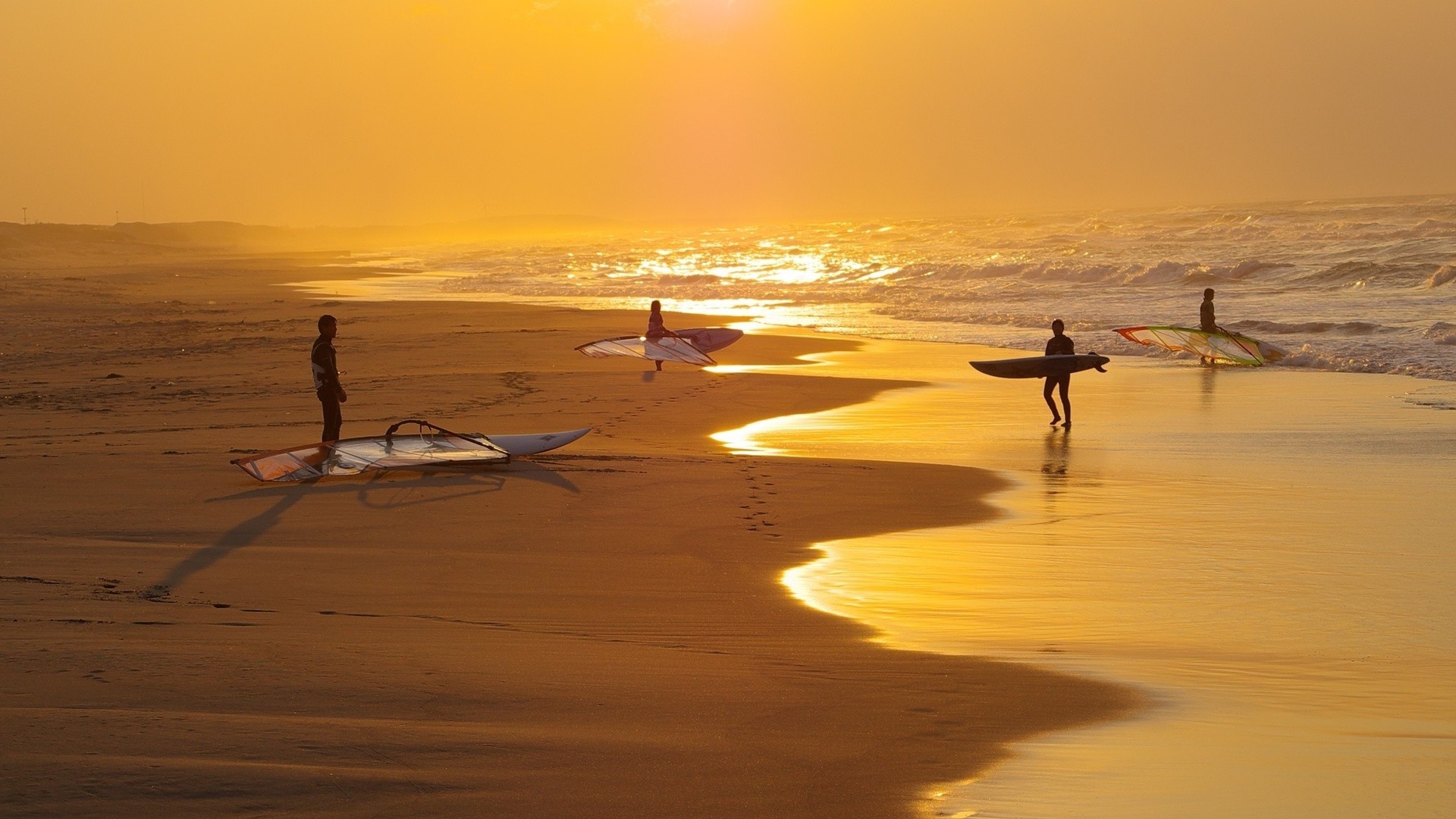 Coucher de Soleil écarlate dans la soirée au bord de l'eau