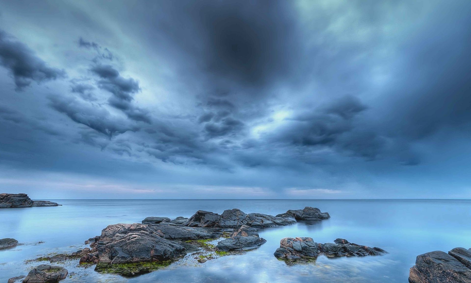 Ciel bleu du soir et le soleil se couche dans les profondeurs de l'océanCiel bleu du soir et le soleil se couche dans les profondeurs de l'océan