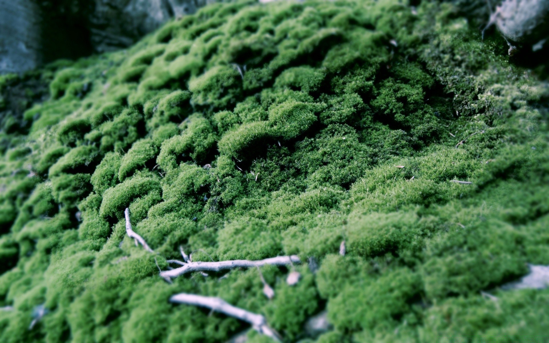 Photographie macro de mousse avec des brindilles sur la pierrePhotographie macro de mousse avec des brindilles sur la pierre