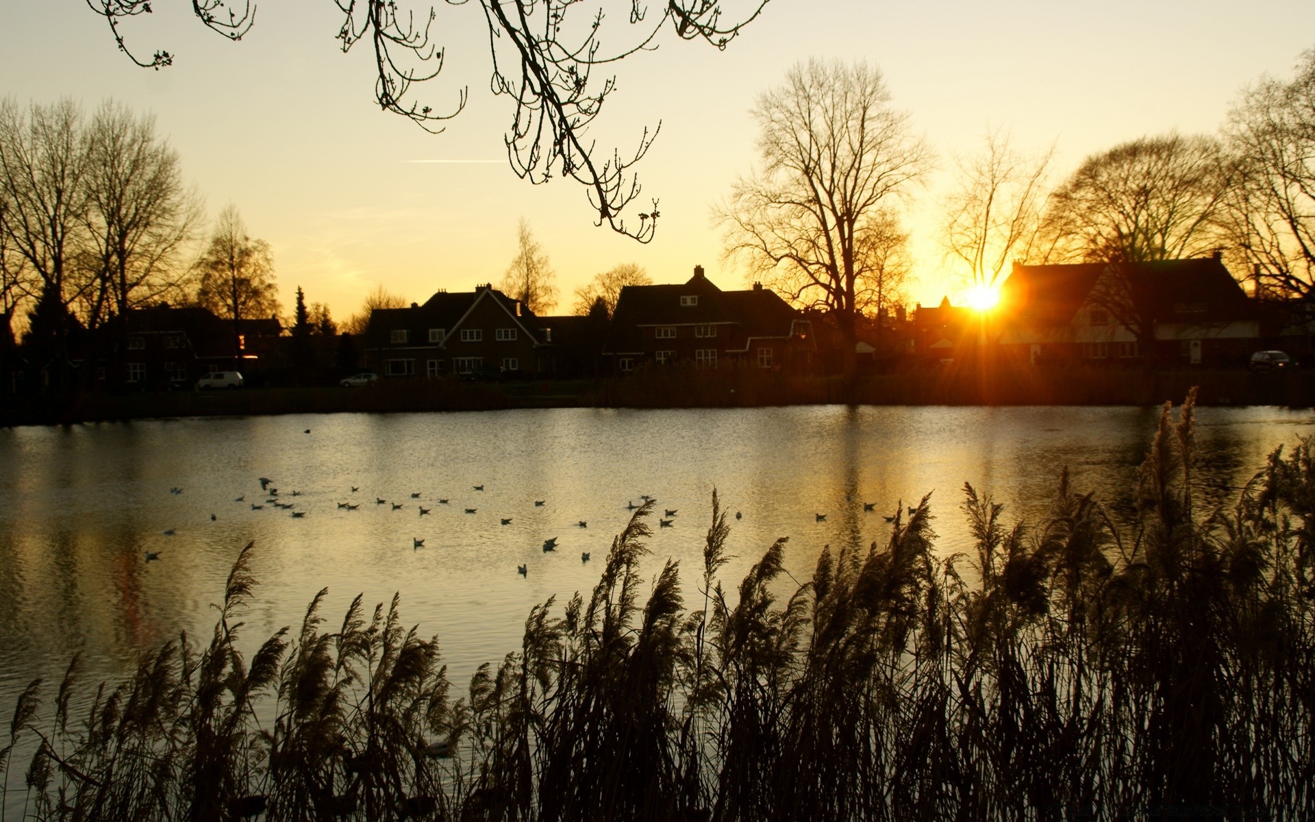 Le coucher de soleil se reflète sur la surface de l'eau