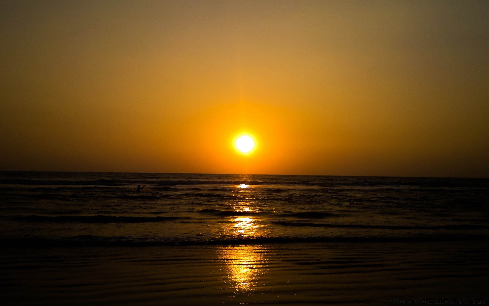 Coucher de soleil doré. Réflexion du soleil dans l'eau
