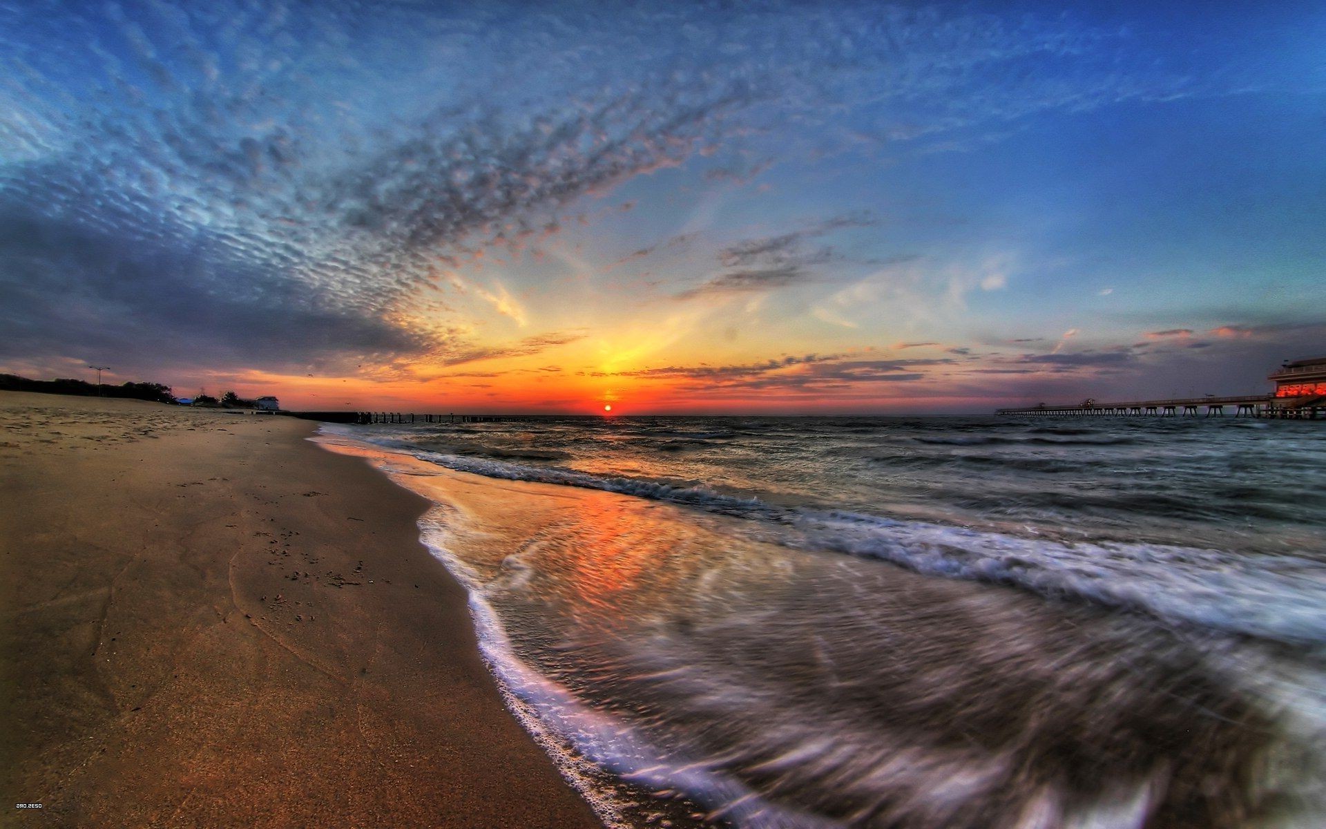 Photo noir et blanc de l'eau de la mer avec la plage sur fond de coucher de soleil