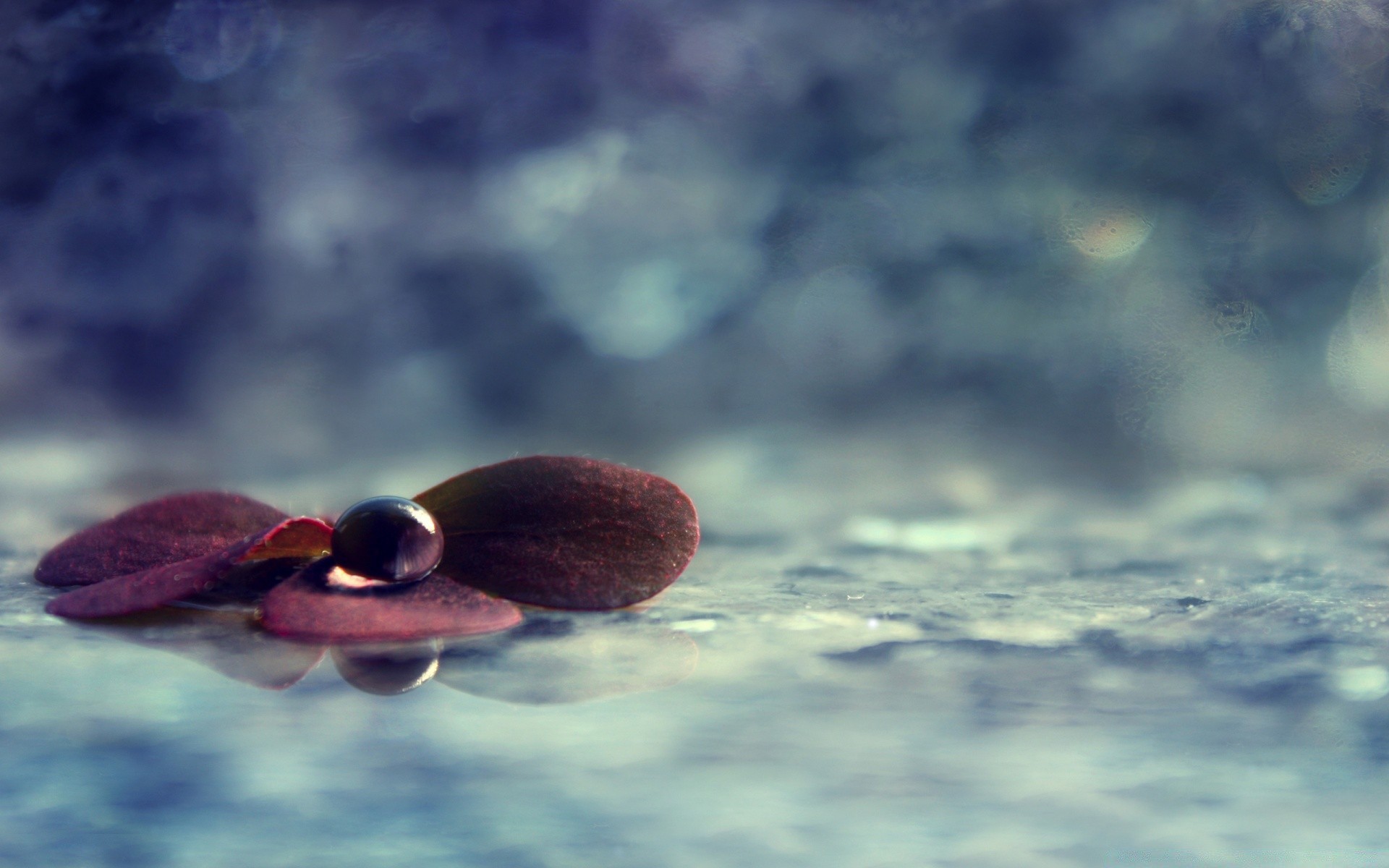 Quelques feuilles violettes. tombé à la surface de l'eau bleue