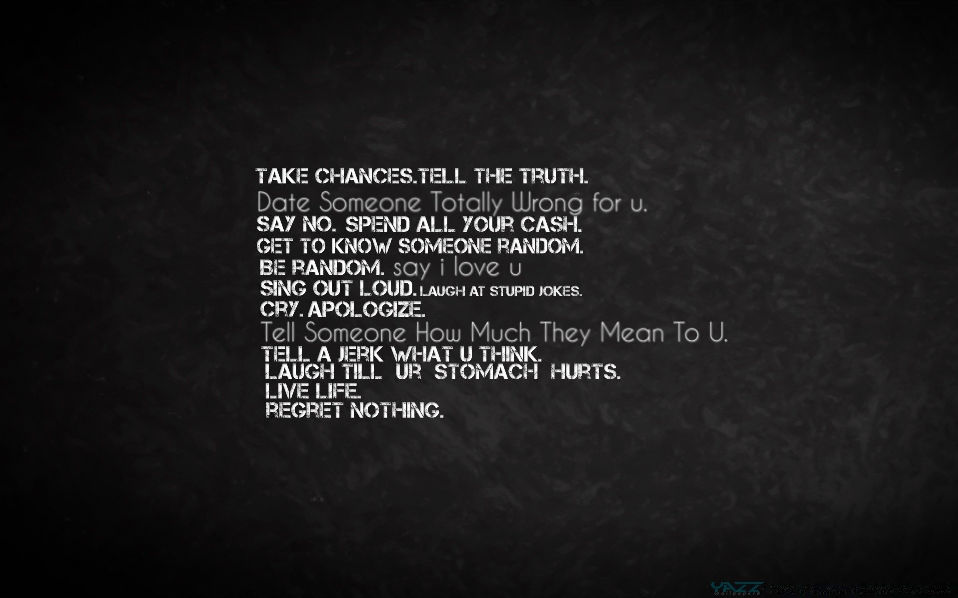 Inscription en anglais et fond sombre