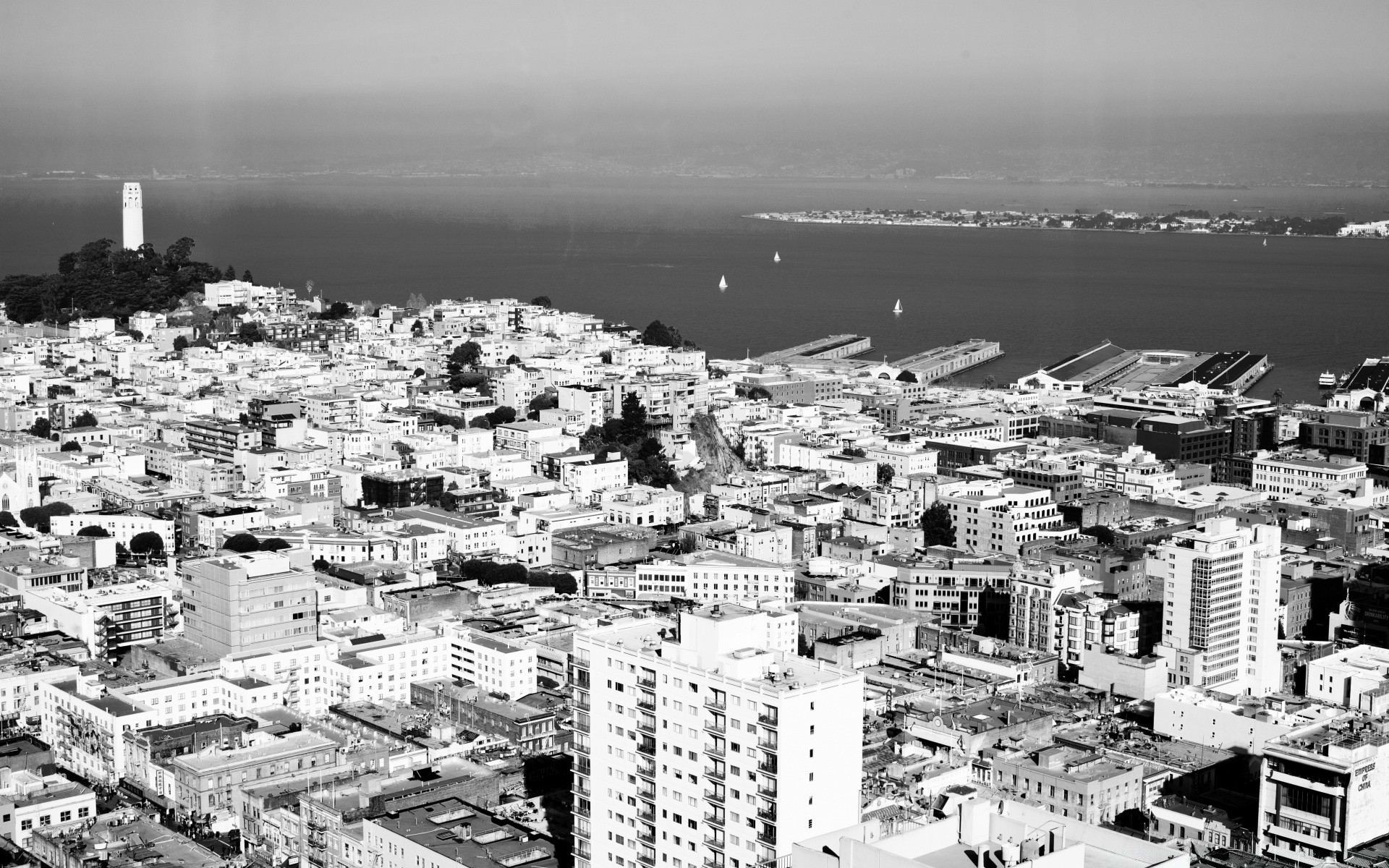 Architecture de la ville et les voitures qui passent en noir et blanc