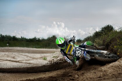 Des motocyclistes portant des casques font des coursesDes motocyclistes portant des casques font des courses