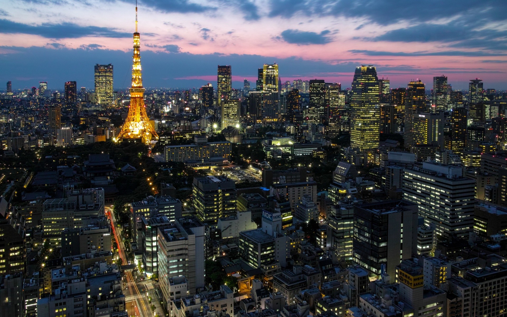 Ville du soir. Mur des immeubles de grande hauteur