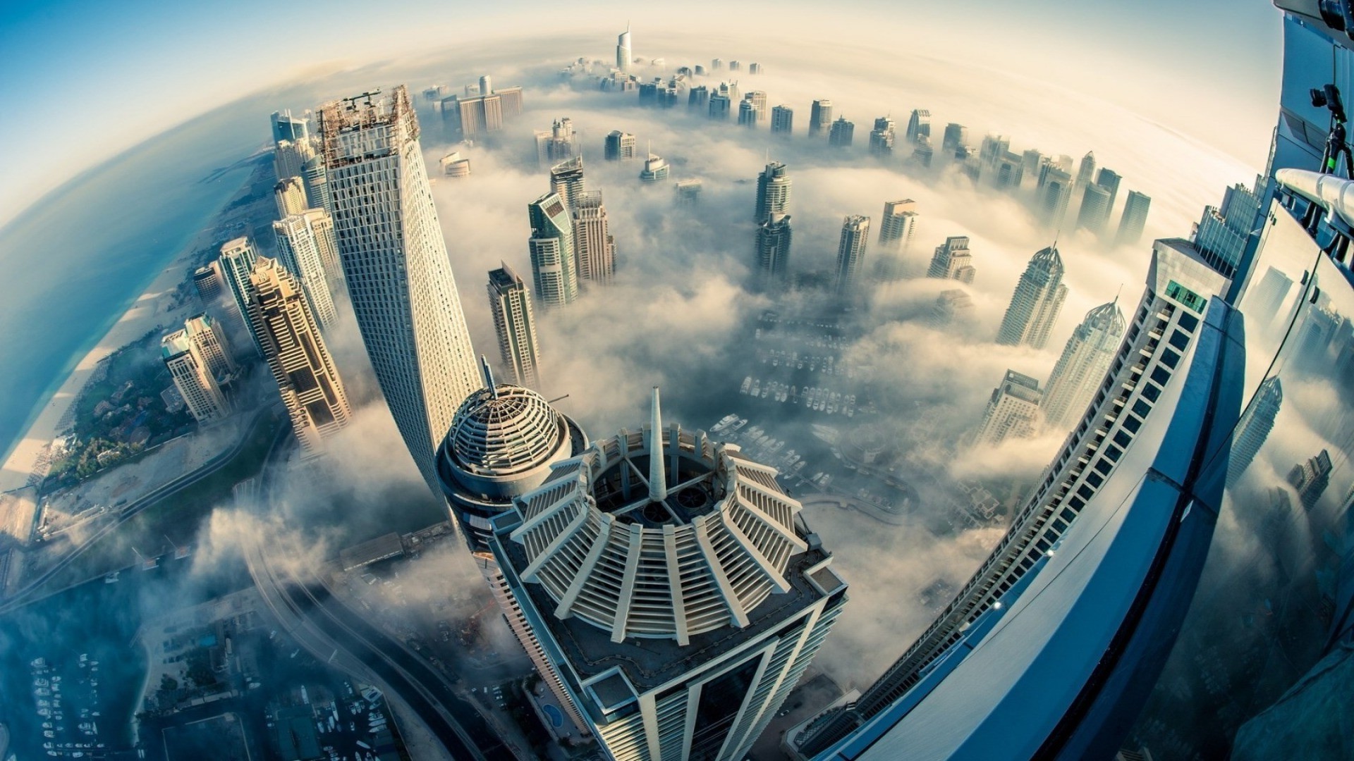 Gratte-ciel solitaire près de la route dans l'éclairage du soir des lanternes
