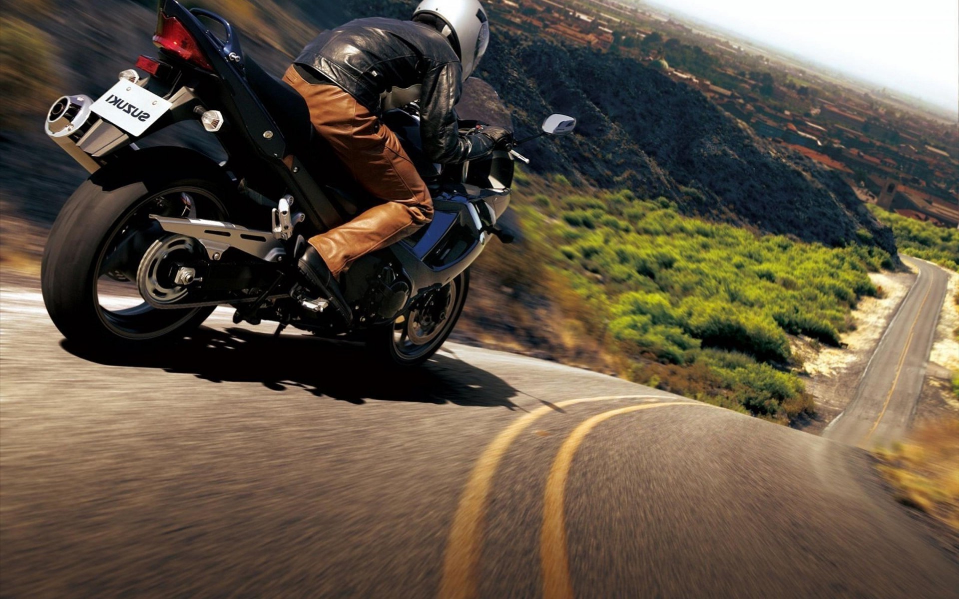 Motard se précipite sur une moto sur une pente raide de la montagne