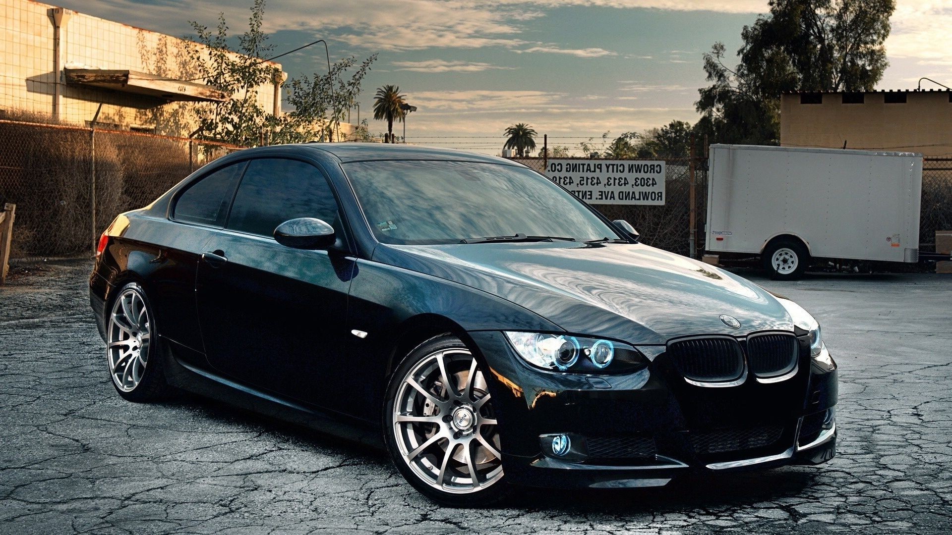 Voiture noire sur un trottoir gris