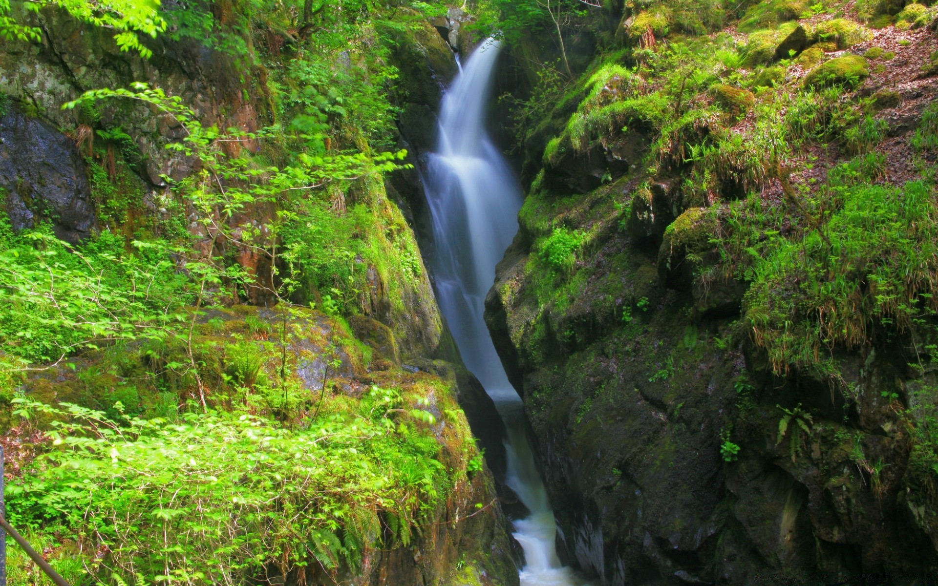 Vue sur la gorge verte avec des cascades