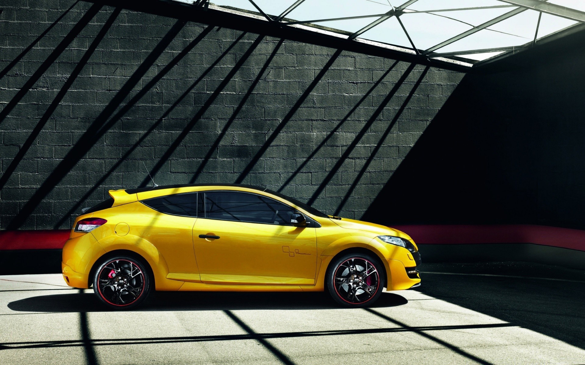 Voiture jaune debout dans le garage