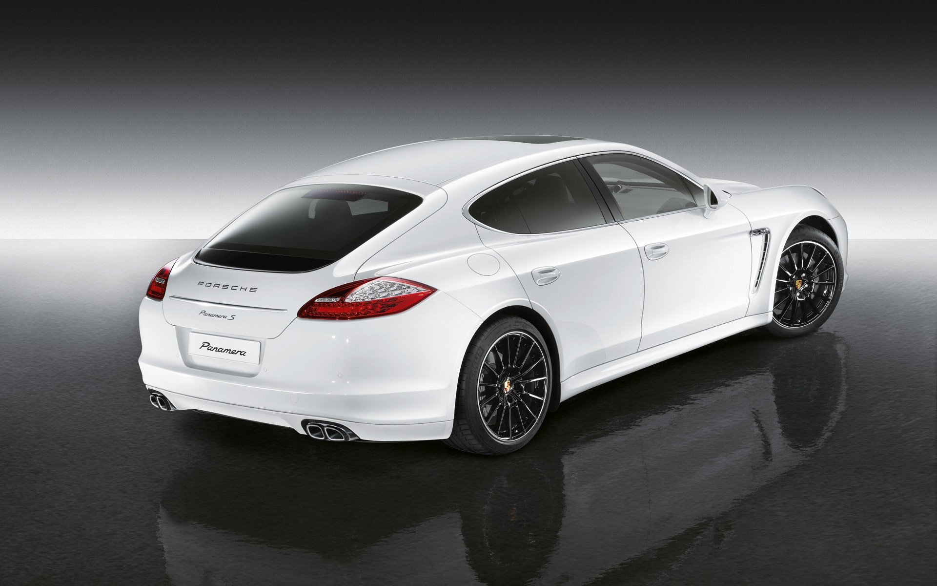 Porsche blanche sur une surface brillante