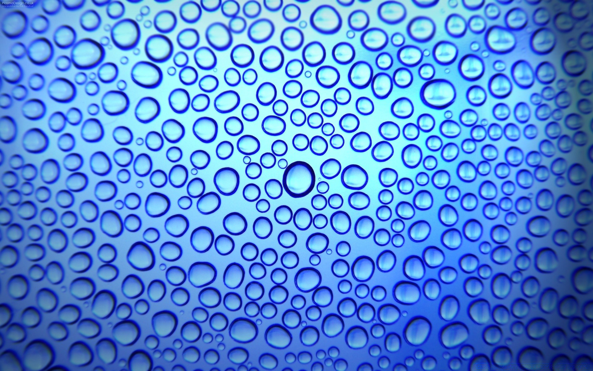 Gouttes de rosée sur fond bleu