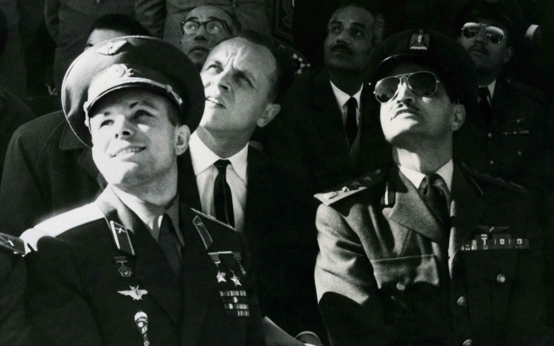Photo de Youri Gagarine avec des militaires