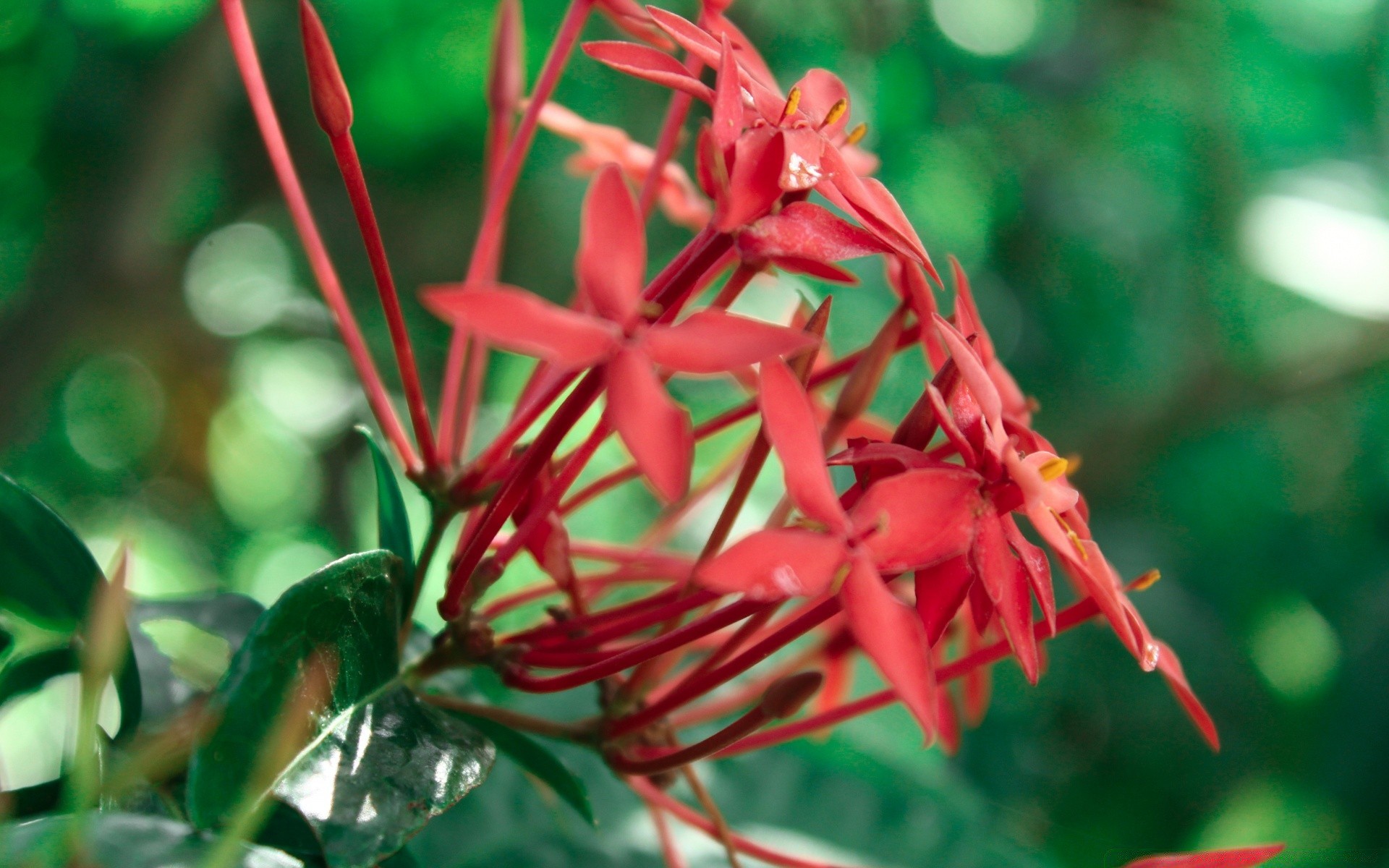 Branche de floraison unique sur fond flou vert