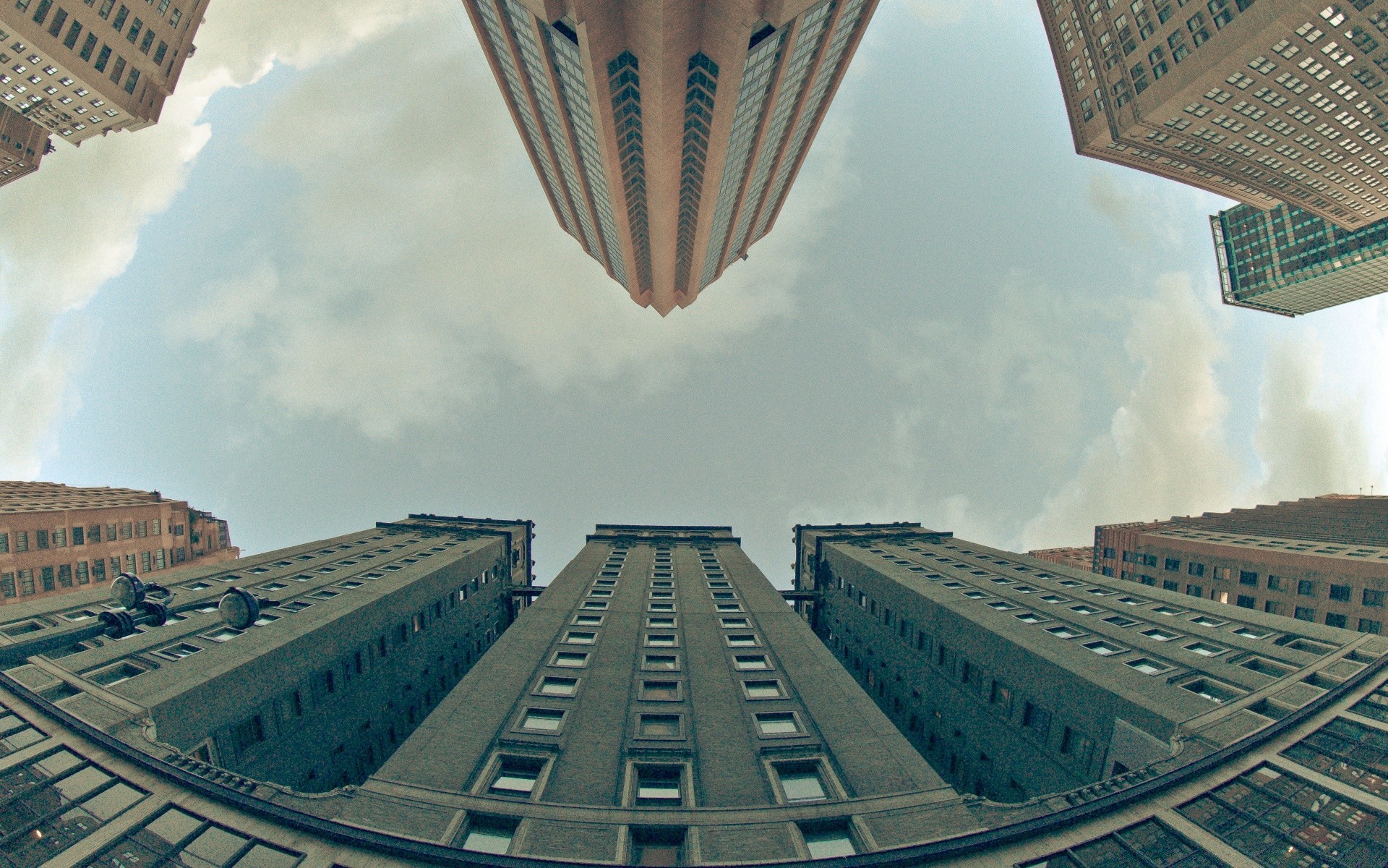 LE CIEL PARMI LA PALISSADE DES IMMEUBLES DE GRANDE HAUTEUR