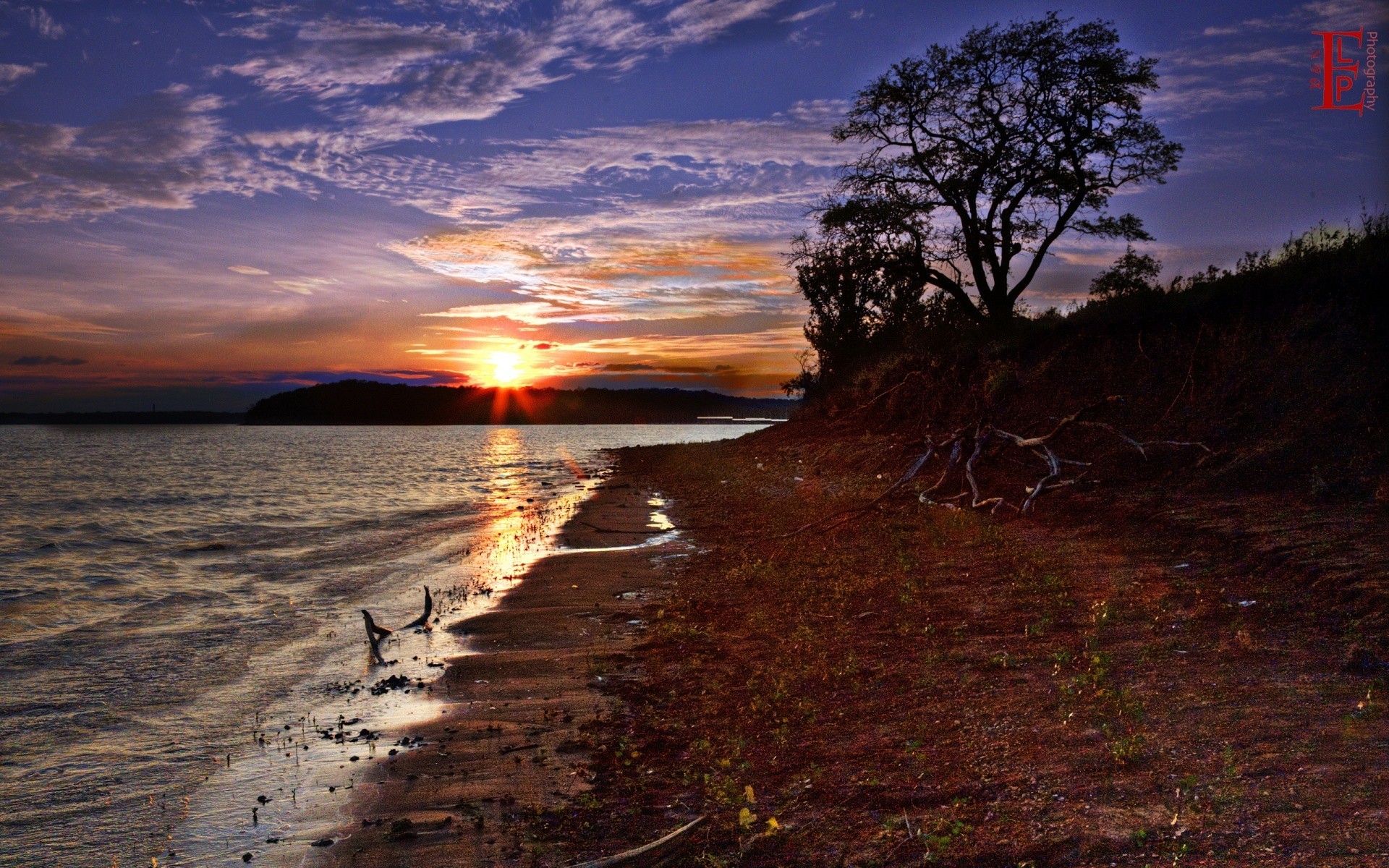 Coucher de soleil sur la rive du réservoir