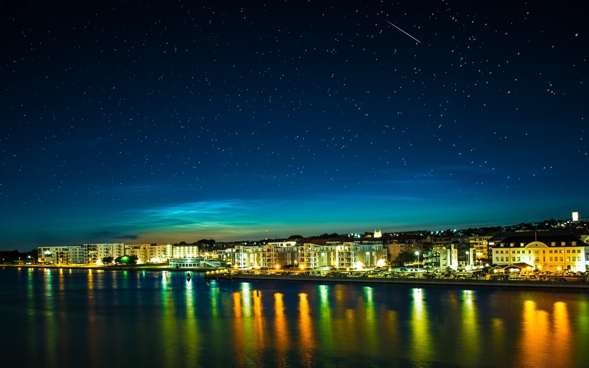 Ville de nuit de l'Europe. Ciel étoilé