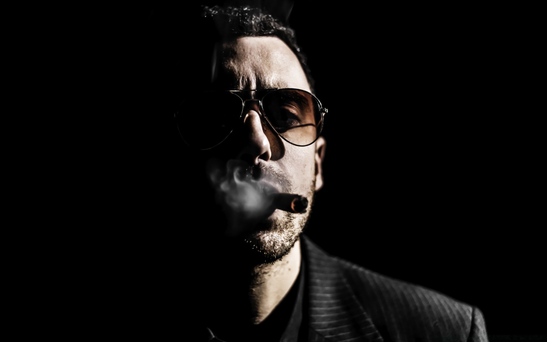 Portrait noir blanc d'un homme adulte avec un cigare dans la bouche